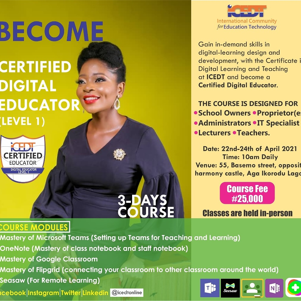 As a relatively new field, and the first ever certification on Digital Teaching and Learning in Africa, applicants should expect 3 days of rigorous training and must be ready to take part in all project work required to gain this certificate.